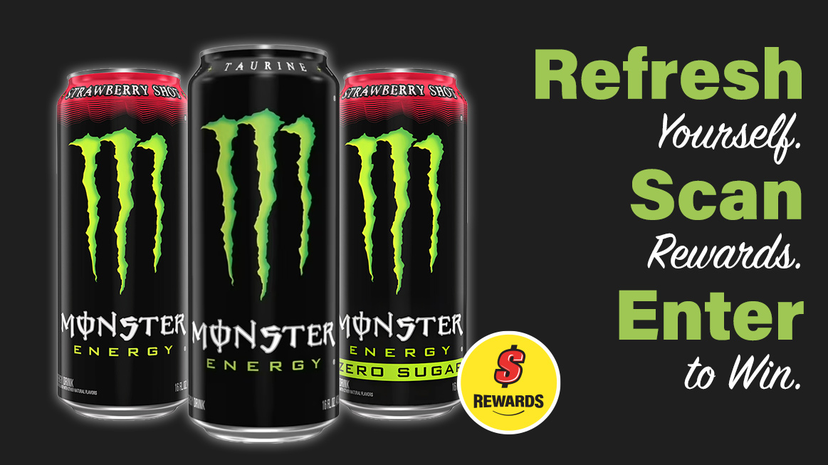 - Purchase three (3) 16oz Monster Energy cans in a single transaction at participating Twice Daily, White Bison Coffee, or Sudden Service locations;